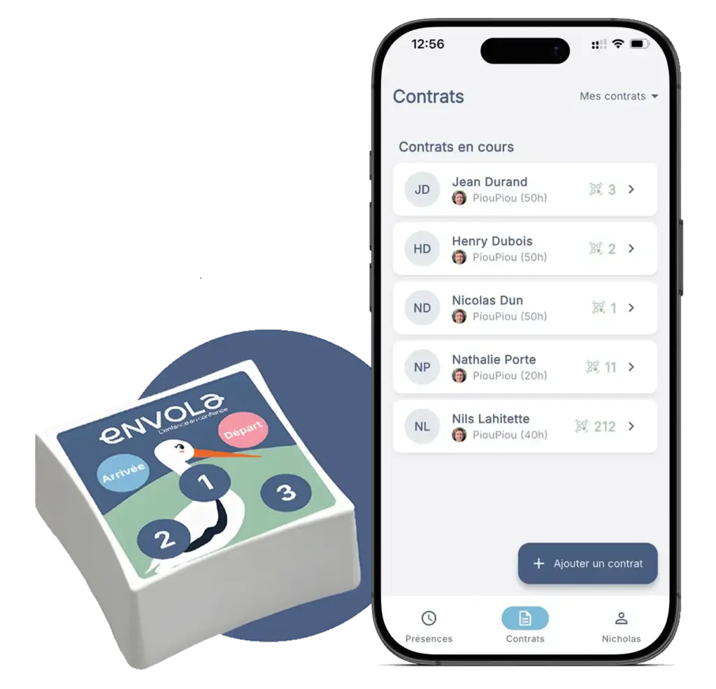 Le PiouPiou joue le rôle de petit secrétaire auprès des Assistantes Maternelles. Installé sur votre lieu d’accueil, il enregistre automatiquement les heures d’arrivée et de départ des enfants grâce à l’interaction directe des parents qui « poppent » leur code.